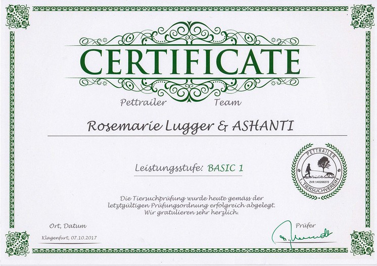 Heute hat unsere Ashanti die Pettrailerprüfung Basic I mit Bravour bestanden. Wir sind so stolz…