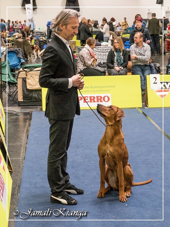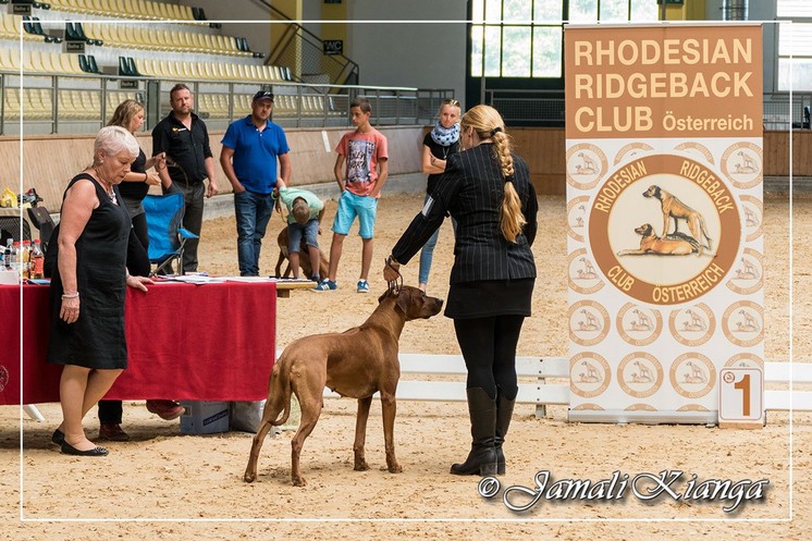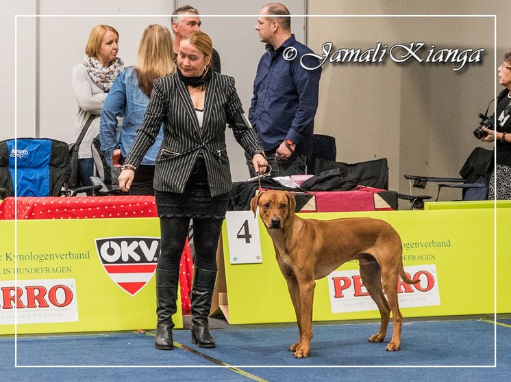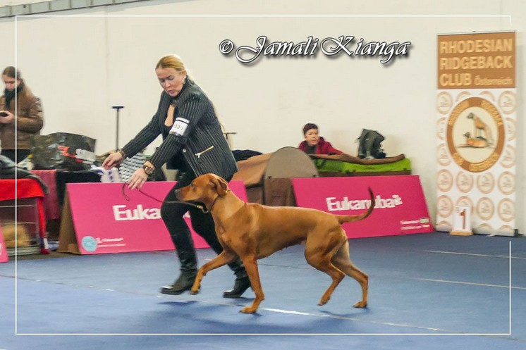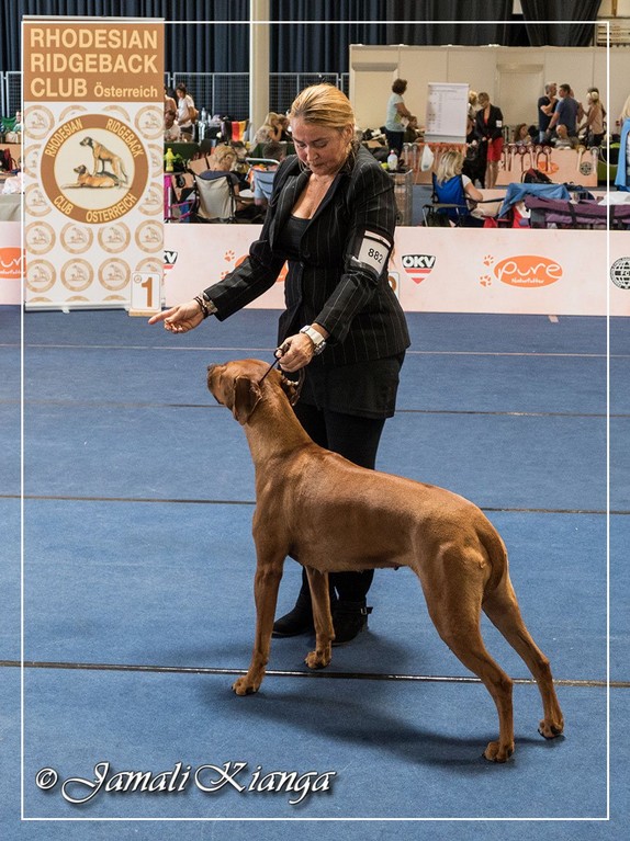 Ashanti gewinnt in der Championklasse und darf mit der optimalen Beurteilung »Vorzüglich 1, CACA, CACIB, beste Hündin, BOB, 4. Platz Gruppe VI« als schönster Rhodesian Ridgeback des Tages, im Ehrenring die Rasse repräsentieren. Dort erzielt sie den hervorragenden vierten Platz. Und – sie erläuft sich sowohl die Crufts Qualifikation, als auch ihre zweite Anwartschaft auf den Titel des Österreichischen Grand Champion. Wir sind soooooo stolz…