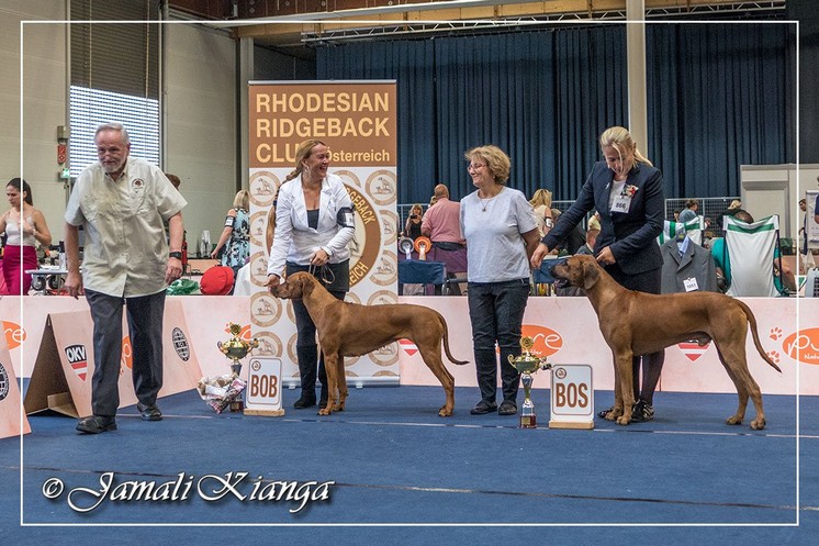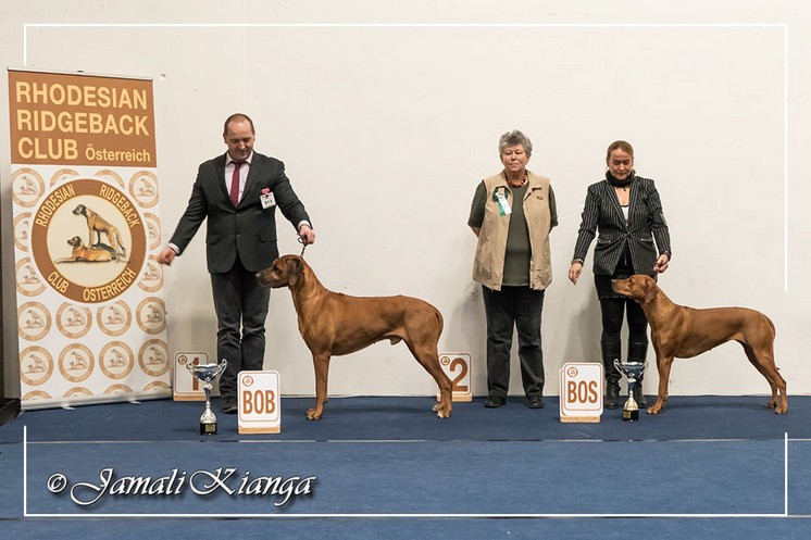 Peter gewinnt mit unserer Nachzuchthündin Bashira of Jamali Kianga die Titel »Beste Junghündin aus österreichischer Zucht« und »Beste Hündin aus österreichischer Zucht«. Damit geht der Titel über von Ashanti auf Bashira.