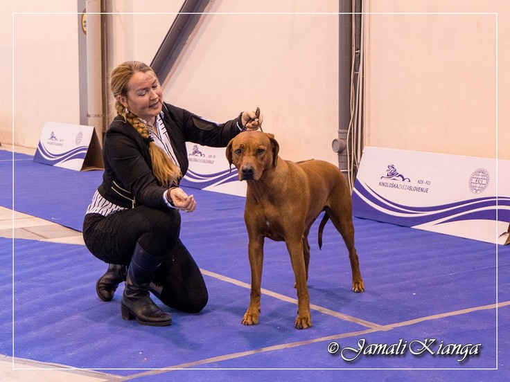 Ashanti präsentiert sich an beiden Tagen hervorragend. Trotz Scheinträchtigkeit, und daher nicht in optimaler Showform, erläuft sie sich am ersten Tag die tolle Beurteilung »vorzüglich 1, CAC, CACIB, beste Hündin, BOS« und damit den Titel »Slovenia Winner 2019«. Am zweiten Tag dann »vorzüglich 1, CAC, ResCACIB«. Wir sind so stolz auf unsere Mädchen…