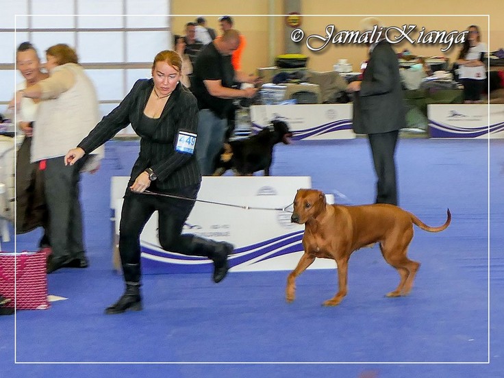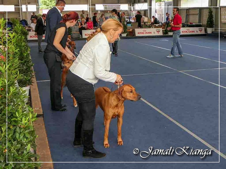 Beide präsentieren sich toll, leider finden die Bemühungen keinen Niederschlag in den Beurteilungen. Während am ersten Tag die Beurteilungen noch im Rahmen waren (Cariba »V2«, Ashanti »V3«), waren sie am zweiten Tag erschreckend. Cariba konnte ihre Klasse mit einem »Sehr Gut 1« gewinnen, Ashanti kassierte eines ihrer schlechtesten Beurteilungen ihrer so erfolgreichen Ausstellungskarriere - »Sehr Gut 3«.