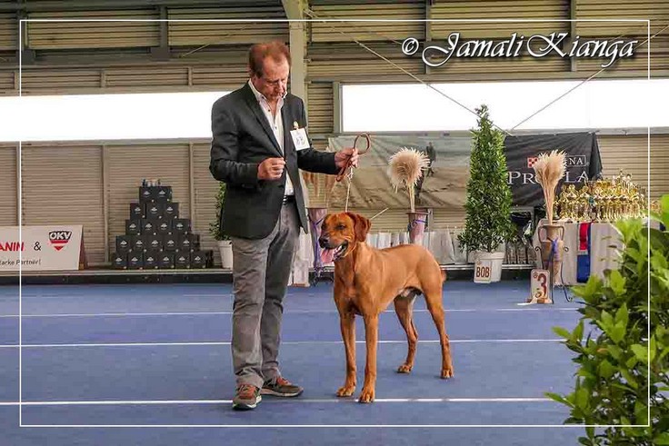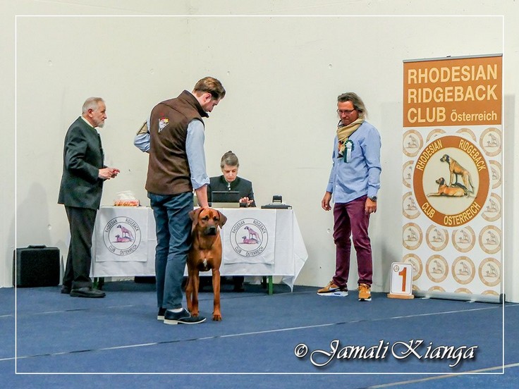 Cariba belegt beim Wettbewerb um den schönsten Ridge den tollen 2. Platz und tritt in die Fußstapfen von Mummy Ashanti und Schwester Bashira. Sie erläuft sich den Titel »Beste Jugendhündin aus österreichischer Zucht«.