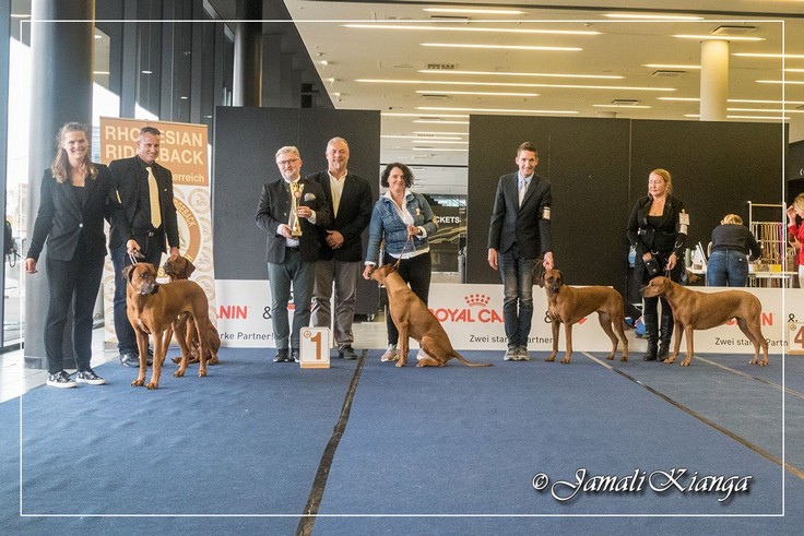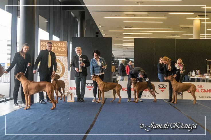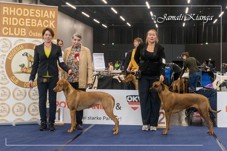 Ashanti erlief sich in der Veteranenklasse ein »Vorzüglich 2, Res. Veteranensiegerin«. Chiku erlief sich ein »Vorzüglich 3« und den Titel »Bester Rüde aus österreichischer Zucht 2021«. Cariba erlief sich ebenso ein »Vorzüglich 3« und den Titel »Beste Hündin aus österreichischer Zucht 2021«Damit konnten beide ihre Titel aus dem Vorjahr erfolgreich verteidigen.