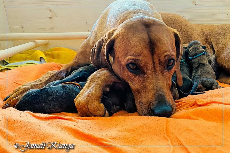 Unsere Nachzuchthündin Cinnamon Tami of Jamali Kianga hat am 22.05. im Kennel of Kiwango Tamu ebenfalls 10 zauberhaften Welpen das Leben geschenkt – wieder sind es 6 Rüden und 4 Hündinnen. Alle sind wohlauf und gesund – ein Welpe süßer als der andere…