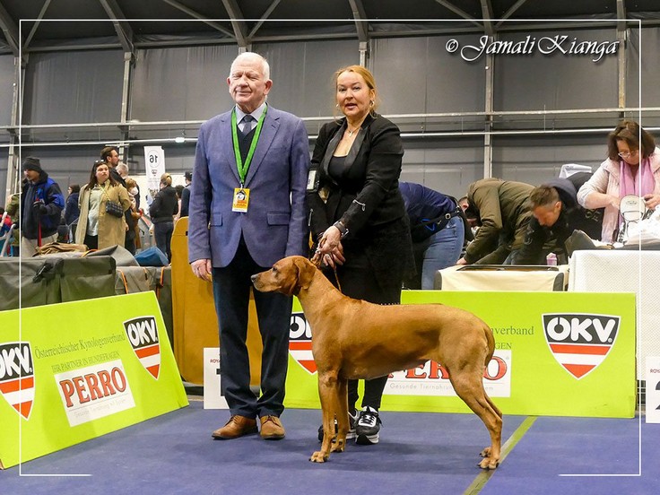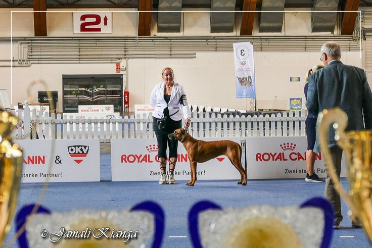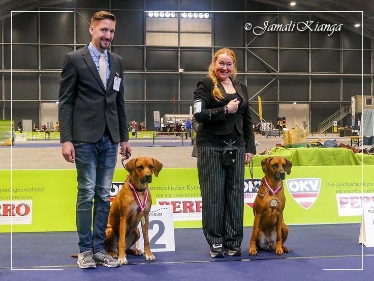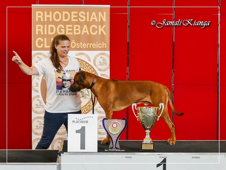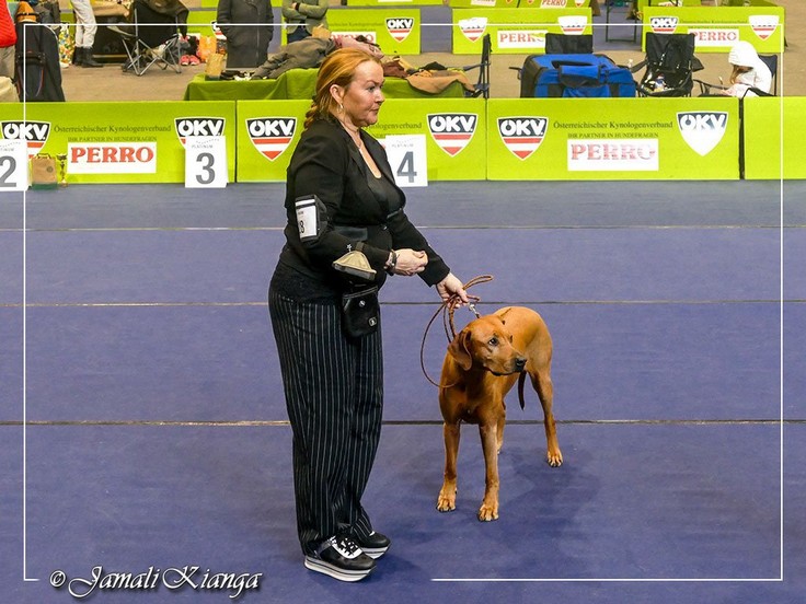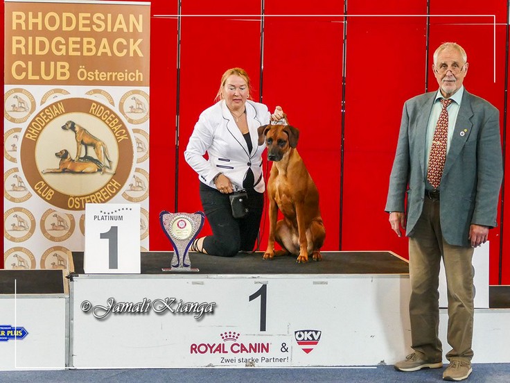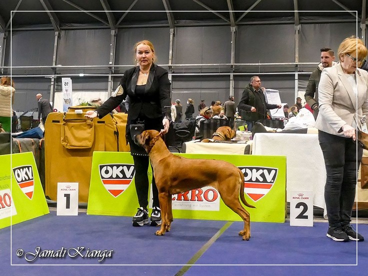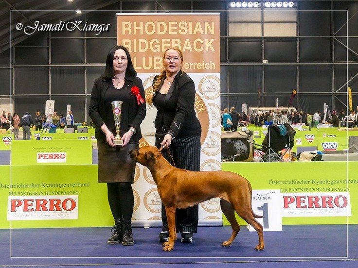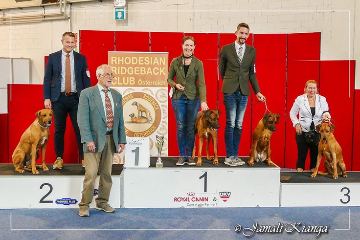Ashanti erläuft sich ein tolles »Vorzüglich 2, Reserve Veteranensiegerin«. Cariba erreicht ein tolles »Vorzüglich 2, Res. CACA« Und zum vierten Mal in Serie erläuft sie sich den Titel »Beste Hündin aus österreichischer Zucht«. Chiku of Jamali Kianga erläuft sich ebenso zum vierten Mal in Serie den Titel »Bester Rüde aus österreichischer Zucht«. Mit der Zuchtgruppe belegten wir den 1. Platz. Außerdem konnten wir in der Nachwuchsparade den 1. Platz erringen.