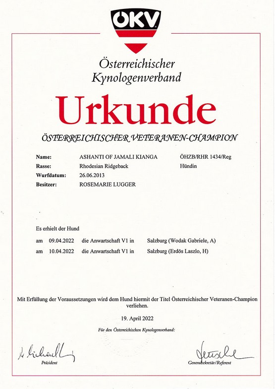 Vize Austrian Veteran Show Winner RRCÖ 2021